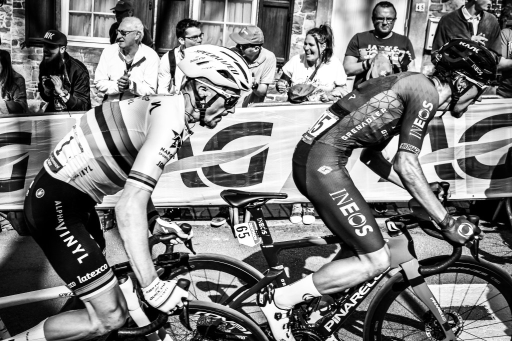 These photographs follow that contraction of space, attention, and energy. For a few hours, the ordinary settings of Huy were reorganised by the presence of the race: spectators waiting, barriers, fleeting apparitions of riders, and the charged atmosphere of a public ritual built around fatigue and ascent. What emerges is cycling in one of its starkest forms, where collective life gathers around a spectacle grounded not in glamour, but in labour, suffering, and resistance.